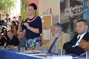 Slušatelji su bili očarani a ravnatelj škole gos. Jozo Juretović, reklo bi se blaženi među ženama, uz iskreno oduševljenje unaprijed nas zamolio da ih češće pohodimo. Sutradan, 29, otišli smo u srednju školu fra Andrija Kačić Miošić u Pločama gdje nas je gostoljubivo dočekala ravnateljica gđa. Ina Žderić. Umjesto jedan školski sat zbog golemog zanimanja i oduševljenja učenika i profesora, ravnateljica Žderić produžila je naše gostovanje na više od dva školska sata. Đaci su slušali napeto, puni interesa i želje da čuju što više. Zadivljuje snaga tih žena ravnateljica, vrlo sposobnih, stručnih i odvažnih. Poslijepodne smo bili u Opuzenu u gradskoj knjižnici. Srdačnost i susretljivost opet nas je iznenadila. Tu nas je dočekala gđa Karmela Papić Pašina i gospođa Barišić koja nas je oduševila vedrinom i zadivila svojom neobičnom knjigom s prekrasnim ilustracijama opuzenskog krajolika. Knjiga je usporedo pisana glagoljicom i hrvatskim standardnim jezikom.